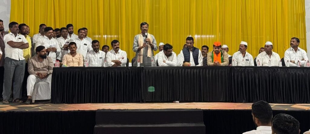 पै. संदीप भोंडवे अन् बैलगाडा मालकांचा निर्धार – या मेळाव्याचे मुख्य आकर्षण ठरले ते म्हणजे बैलगाडा मालक आणि कुस्तीगीर परिषदेचे अभूतपूर्व संघटन. महाराष्ट्र राज्य कुस्तीगीर संघटनेचे अध्यक्ष पै. संदीप भोंडवे यांनी विजयाचे रणशिंग फुंकताना सांगितले की, “किरण साकोरे हा माझा पट्टशिष्य असून लाल मातीतला अस्सल पैलवान आहे. ज्याप्रमाणे आम्ही कुस्ती क्षेत्रात ताकद लावतो, तशीच ताकद आता त्याला निवडून आणण्यासाठी लावू. सर्वसामान्यांना देवदर्शन यात्रा घडवणारा आणि अडीअडचणीला धावणारा आपला माणूस आता जिल्हा परिषदेत दिसेल.”