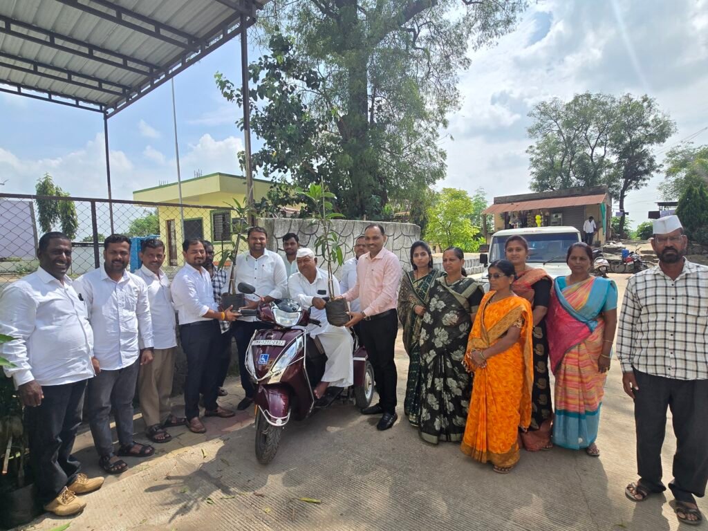 वृक्षारोपण व दिव्यांग बांधवांचा सन्मान: या भेटीदरम्यान, आंब्यांच्या झाडांचे वृक्षारोपण करण्यात आले आणि ‘प्रत्येक कुटुंबाला एक झाड’ या संकल्पनेनुसार वृक्ष वाटप सुरू करण्यात आले. विशेष म्हणजे, दिव्यांग बांधवांचा सन्मान करत त्यांना समाजाच्या विकासाच्या मुख्य प्रवाहात आणण्यासाठी, गावातील ज्येष्ठ दिव्यांग सत्यवान दगडू गव्हाणे यांना मान्यवरांच्या हस्ते आंब्याचे झाड देऊन वृक्ष वाटपाचा शुभारंभ करण्यात आला.