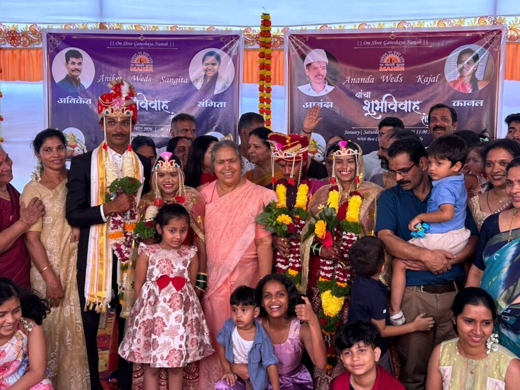माहेरला मिळाला ३१० वा जावई: माहेर संस्थेने आजवर शेकडो निराधार लेकींची लग्ने लावून दिली आहेत. आज या सोहळ्याने संस्थेला ३१० वा जावई मिळाला. सामाजिक कार्यात अग्रेसर असणारे रामचंद्र एज्युकेशन सोसायटीचे अध्यक्ष मारुती भूमकर आणि लुसी कुरीयन यांच्या उपस्थितीत, मधुसूदन शिंदे गुरुजींच्या मंत्रोच्चारात हा विवाह पार पडला. यावेळी आपल्या लाडक्या लेकींना सासरी पाठवताना ‘माहेर’मधील प्रत्येक सदस्याचे डोळे पाणावले होते, मात्र हे आनंदाश्रू त्या लेकींच्या उजळलेल्या भविष्यासाठी होते.